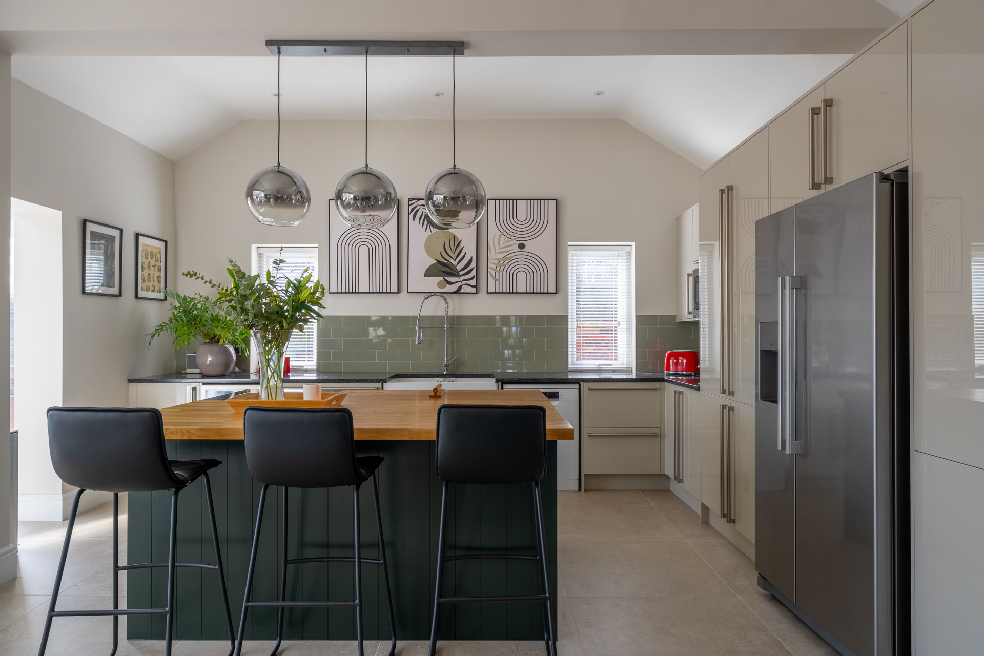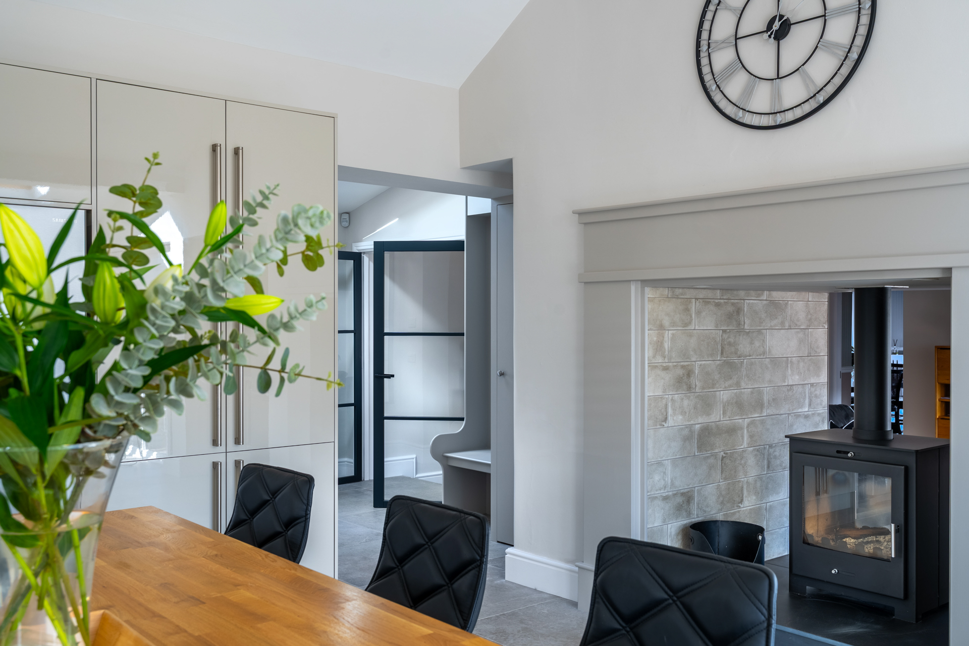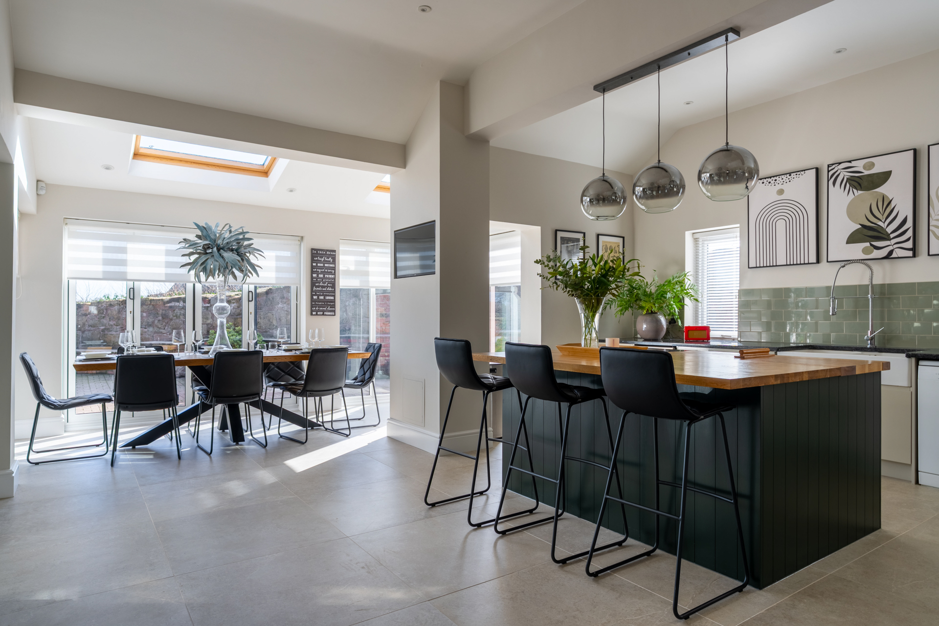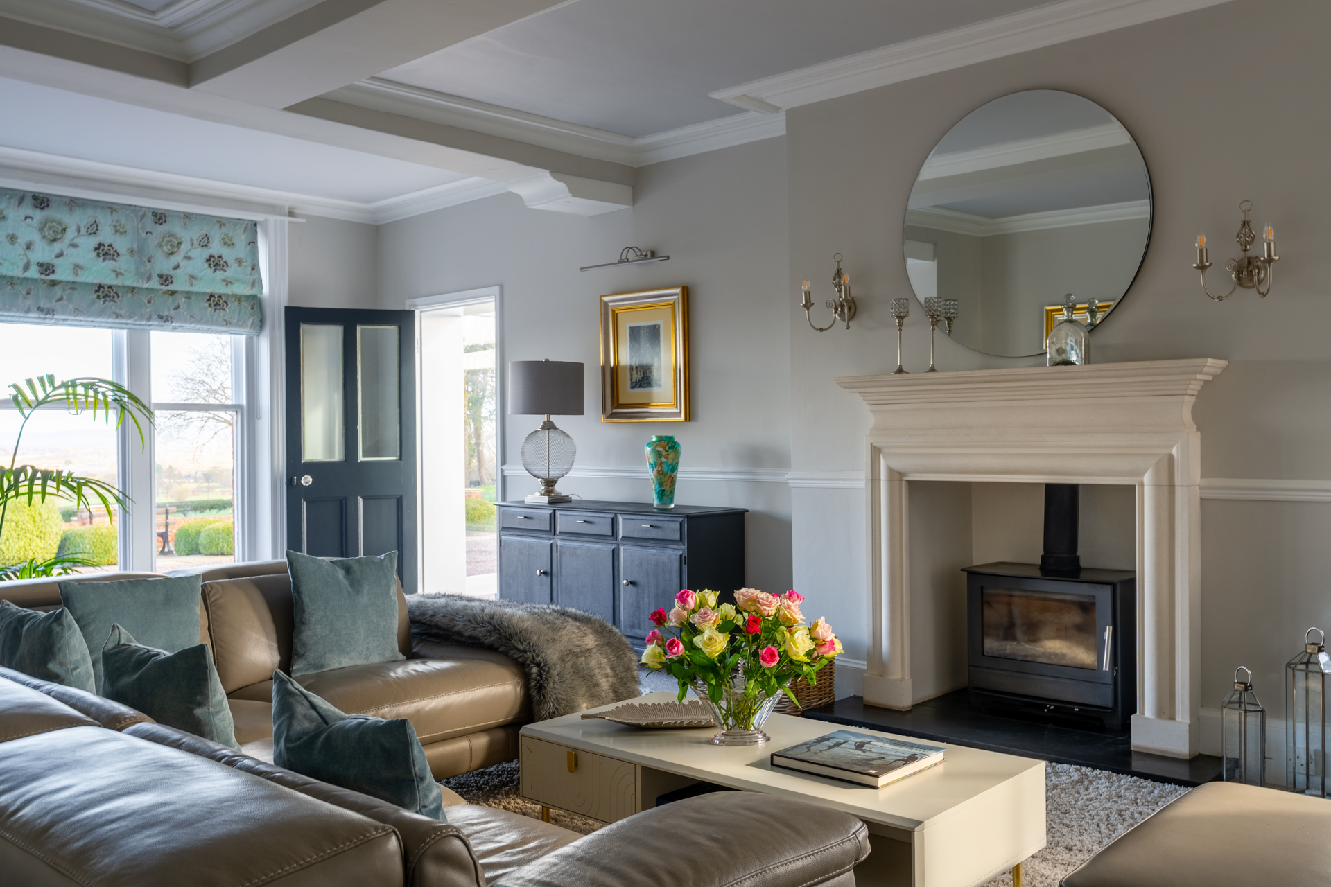 Inside, the challenge was scale. With reception rooms of such volume — from the stately drawing room to the 30-foot kitchen and living space — we leaned into wide architectural frames paired with smaller vignettes to retain intimacy. Rich textures, polished wood, and period detailing were given their own moments to breathe, using carefully controlled natural light and supplementary fill to maintain a warm, inviting tone across every scene.