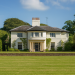 We began with aerial work to establish the grandeur of the approach. The drone’s slow, measured ascents revealed not just the house’s commanding façade but also its secluded setting on the edge of the village. Early morning light filtered through mature trees, creating shifting patterns that we carried through into our ground-level compositions.